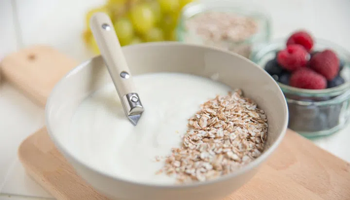 There are many types of oats – steel cut, instant, rolled. The difference is in the texture and cooking time. The nutritional value of these oats are similar, high in fibre and protein, low in calories and fat. There is a special soluble fibre called beta-glucan that helps your intestinal tract trap substances to reduce cholesterol levels. Try this nutritious Bircher Muesli recipe.