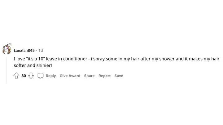 User @Lanafan845 shared her little hair secret - a bottle of It's A 10 Miracle Daily Conditioner ($77). She shared: "I love “it’s a 10” leave in conditioner - i spray some in my hair after my shower and it makes my hair softer and shinier!"