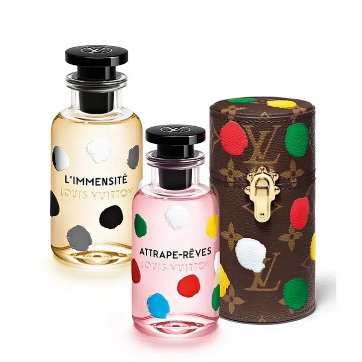 long-standing partnership with the visionary, Louis Vuitton has once again teamed up with Kusama, this time with the artist’s instantly recognisable motifs adorning three of the brand’s signature fragrances – Attrape-Reves, Spell On You and L’Immensite.