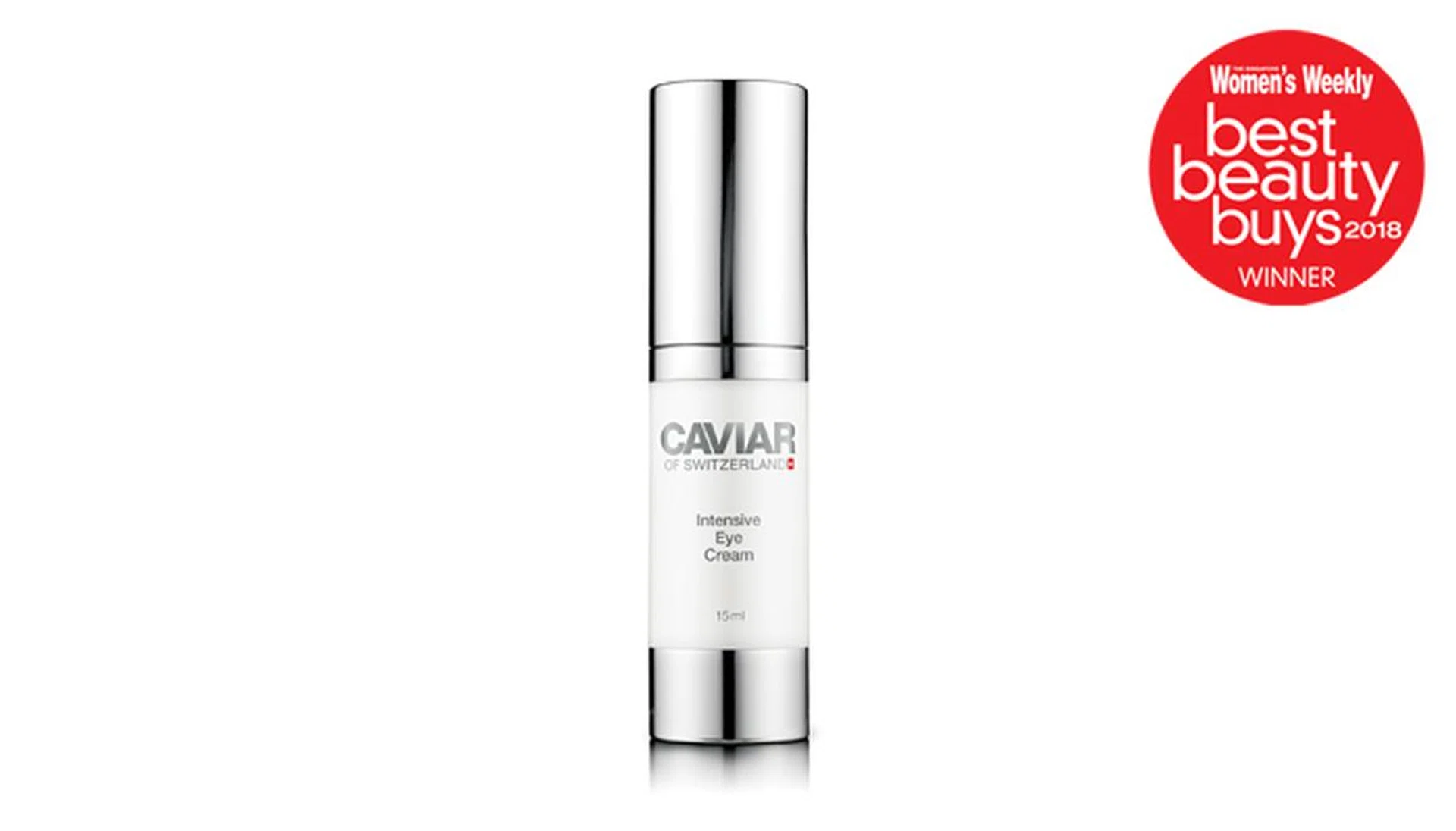 Treat your eyes with the rejuvenating Caviar of Switzerland Intensive Eye Cream, a luxurious balm that's enriched with organic floral water and vitamins.