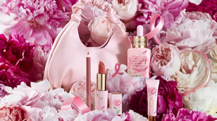 Estee Lauder: Pink Ribbon pin ($20), Bouquet of Strength Lipstick Collection ($70) and Advanced Night Repair Synchronized Multi-Recovery Complex ($197)