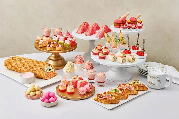 Even the desserts are awash in pretty rosy hues, from the luscious Lychee & Rose Cake, to the dainty Pink Guava Opera and Rose Cream Creme Brulee. There'll also be selection of finger sandwiches, buttery croissants, chilled delicatessen and cheeses.