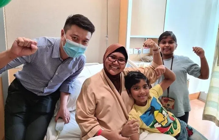 Her daughter, Alyssa Mohamed Iqbal, now 14, and her son, Aqeel Mohamed Iqbal, now 12, visited their mother the day after her surgery and played hide and seek in her single-bedder room.