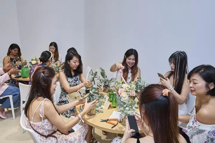 They were then invited to the back-of-house room for a floral arrangement workshop led by Joan Chua, director of floral design school Fleuriste.