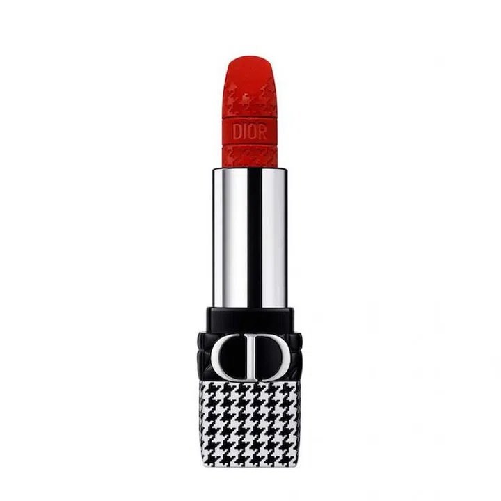 On makeup: the Dior Forever Couture Perfect Cushion and six shades of Rouge Dior lipsticks come dressed in houndstooth. Another fun bit of houndstooth detail: the embossed bullets of the lipsticks, which are a nice visual touch.