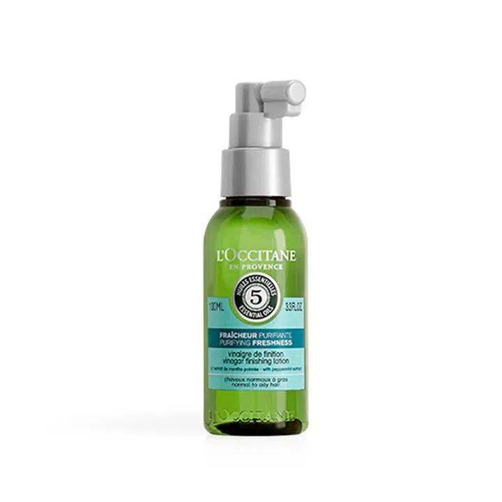 Formulated without silicones, this vinegar finishing lotion purifies oily hair to maintain clean and fresh hair longer between washes. It restores shine, detangles the hair, and soothes the scalp. Simply spray it over the scalp and massage the head to leave your scalp feeling refreshed.