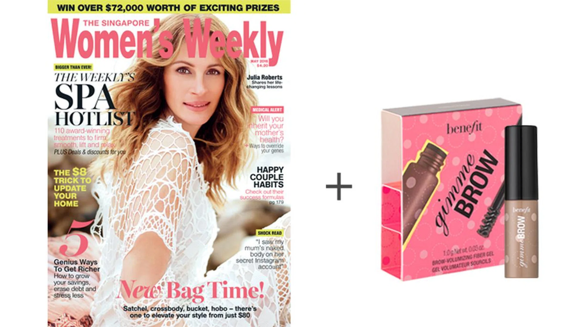 Receive a 3-month complimentary digital subscription to The Singapore Women’s Weekly when you get your eyebrows waxed at Benefit Brow Bar counters.