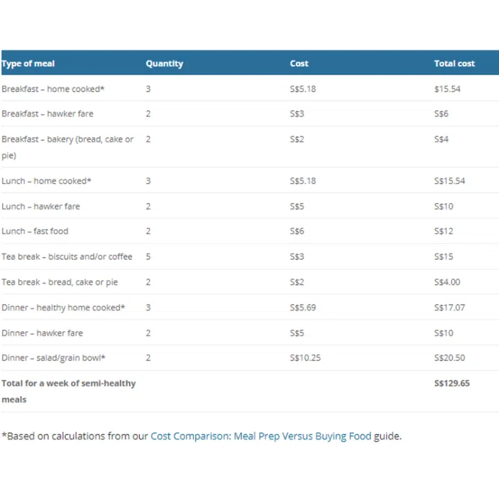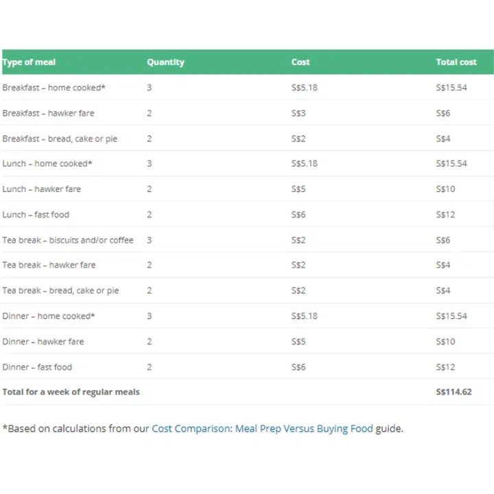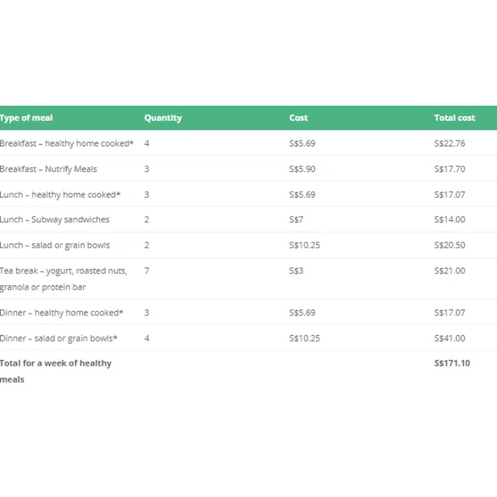 Eating healthy may not be a cure-all, but studies have shown that it can significantly reduce the chance of diet-related illnesses. So if you ask us, that additional S$41.45 or S$56.48 a week for healthy balanced meals definitely sounds like the better deal.
