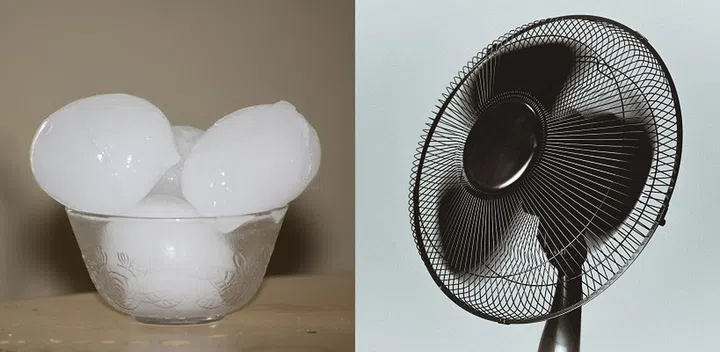 Here is an alternative way to keep cool if you are not a fan of air-conditioning: Put ice cubes in a bowl and place it directly in front of a fan. When the wind from the fan blows over the ice, it creates a cooling mist.