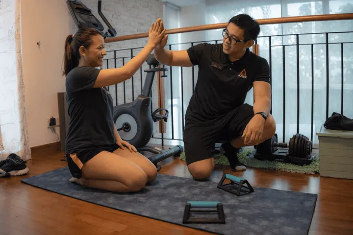 Unlike most fitness programmes, the team at Apex trainers do not require a gym. Instead, they travel to clients – meeting them at their condominium gym, the outdoor fitness station at their HDB estate, or even in their own living rooms.