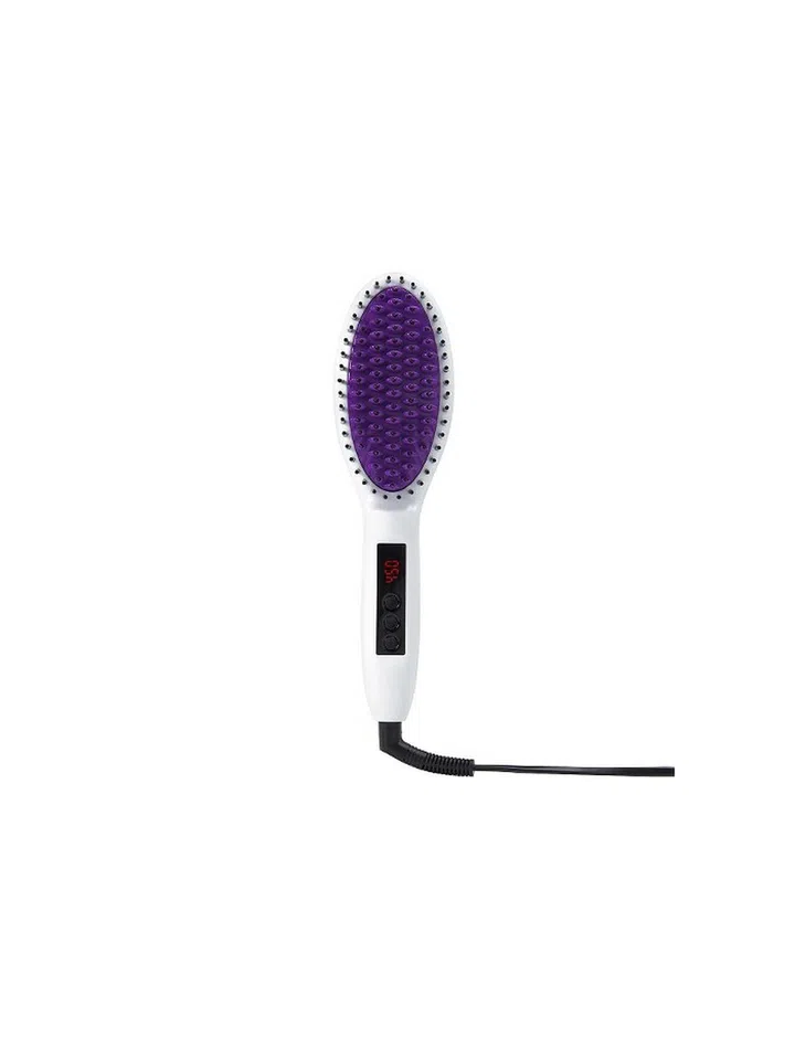 Even thick, coiled, and ultra-curly hair can be straightened with this brush, as long as you work in small sections. The heat is adjustable and the brush swivels 360 degrees so you can straighten at all angles.