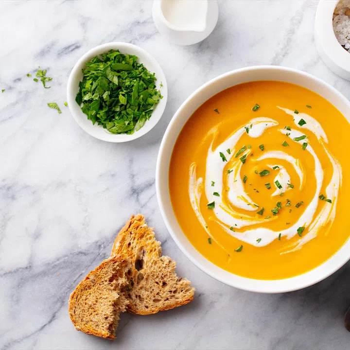 This meal works well for lunch or dinner. The liquid fills up your stomach, leaving less space for higher-calorie foods. People who start with soup before moving on to their main course consume 20 percent fewer calories. Adding beans to the soup adds fiber and protein and makes the soup even more filling.
