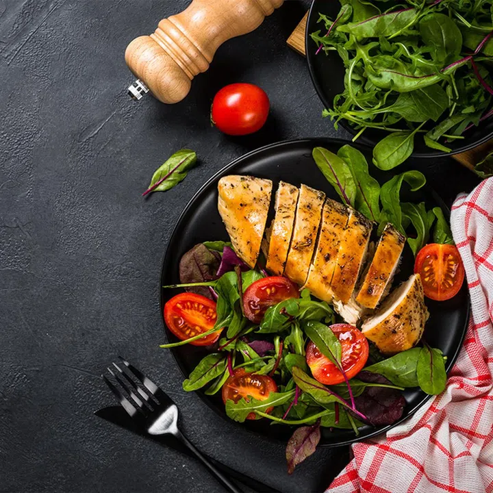 You can make the chicken with cayenne pepper or make a sauce you dip the chicken in as you eat. Cayenne pepper contains ingredients that keep hunger pangs away and boosts calorie burn. You can add some brown rice to the meal.