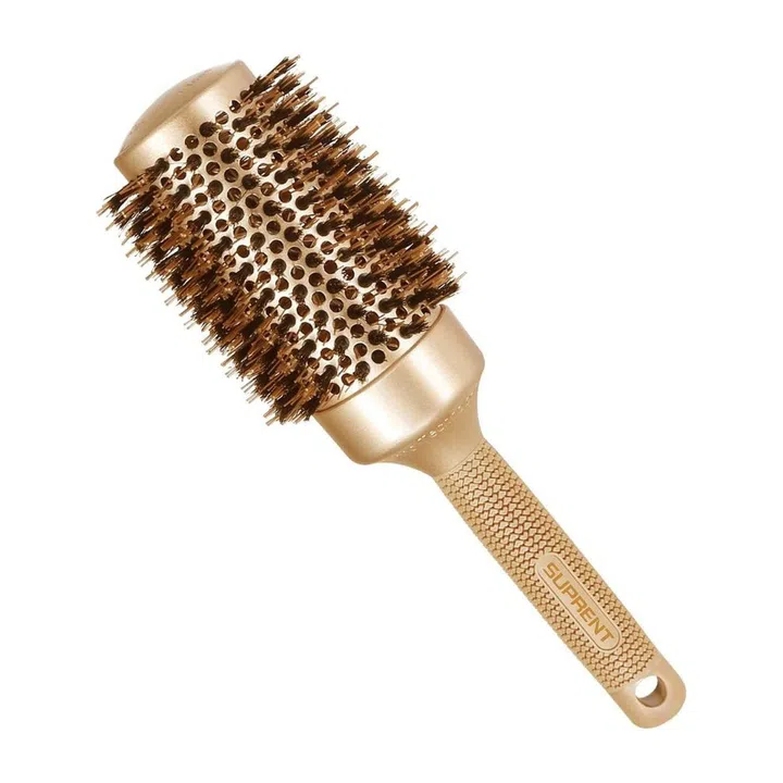This round brush with 100% natural boar bristle is designed to add shine and smoothness to your hair for a variety of hairstyles. To be used as part of your blow drying routine, the brush features ionic technology that helps reduce frizz and static, and has an upgraded ergonomic handle for ease of use.