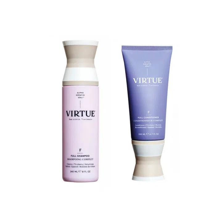 The Virtue Full range plumps and lifts fine hair, helping to protect it while adding body. The multi- patented Alpha Keratin 60ku is said to increase each hair shaft size by up to 22 per cent.