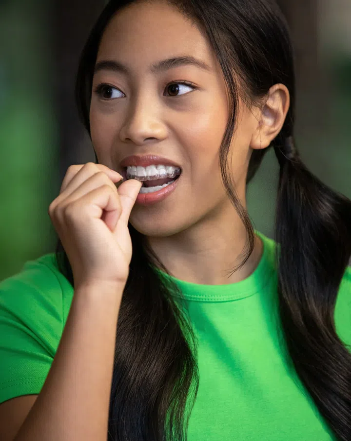 It also means that their lifestyles aren't affected as they don’t need to compromise on dental hygiene or eating some of their favourite food — something that may be difficult to do so with metal braces. In fact, 65 per cent of dental hygienists agree that most Invisalign patients have a visible reduction in plaque during treatment. Of course, aligners must be worn diligently to get the desired results. Without the wires and brackets, clear aligners are also more comfortable and cause less irritation and ulcers.