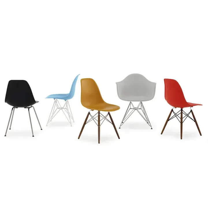 The Eames Molded plastic chair was a breakthrough because it was a multi-purpose chair. You could also modularly switch up the legs into rocking legs.