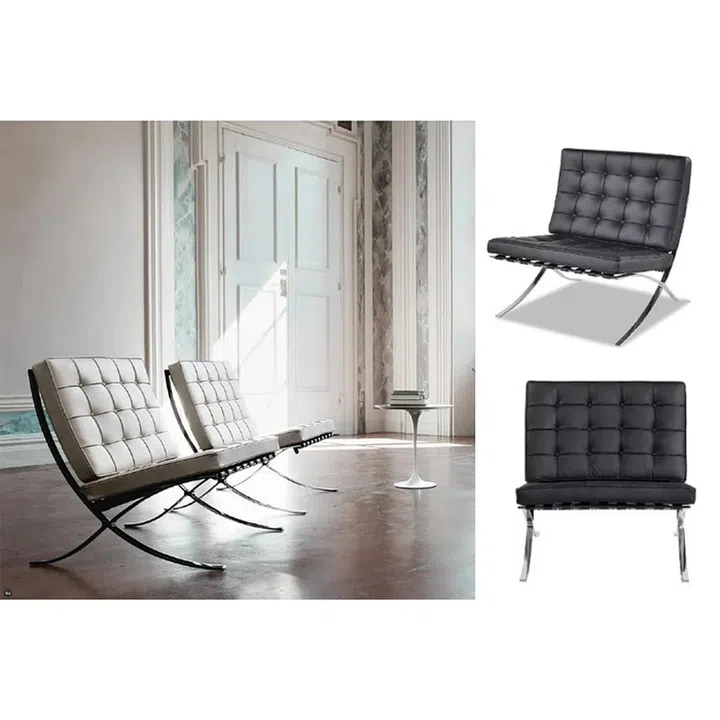 The original Barcelona chair comes in three colours – black (US$7,974), parchment (US$7,974), and white (US$10,448 from Knoll). Fakes of the Barcelona Chair by Knoll range from $670 to $2,179 from Fortytwo and HipVan.