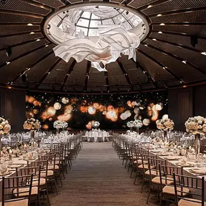 Eternalise your vows with a tranquil solemnisation experience in the stunning circular ballroom at Capella Singapore located in Sentosa with a dazzling glass-dome skylight and large curved LED Wall.