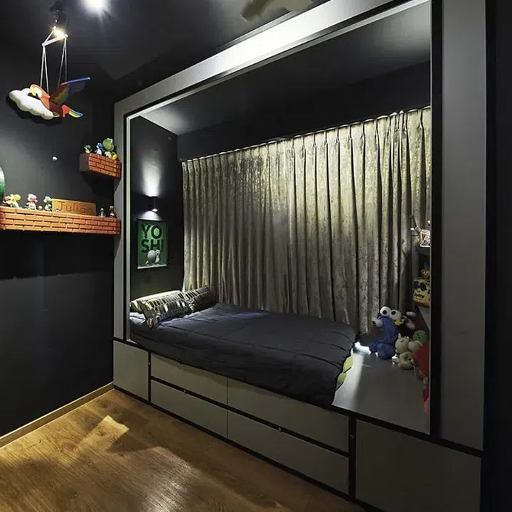 Keep the big ticket items in the room age-neutral, like bed frames and wardrobes. Super single bed is always a safe bet for growing children, while built-in bed frames in neutral colour by Wolf Woof, can be easily accessorised according to the child’s changing taste.