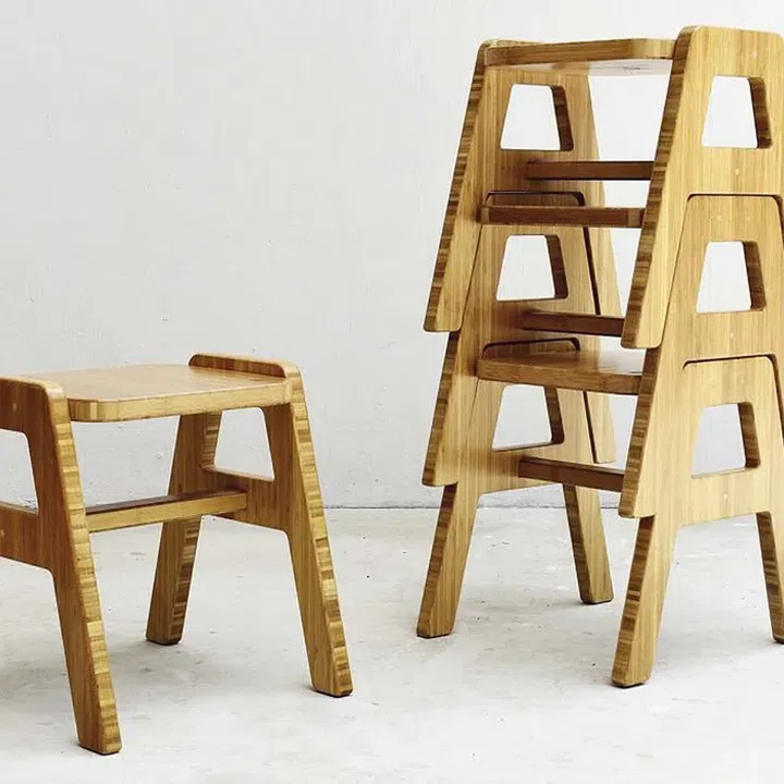 Get the most mileage from children’s furniture by choosing multifunctional pieces. Think of changing tables that can be repurposed as study desks, height-adjustable desks, benches and bedframes with storage bases. This Multipurpose Stackable Low Stool from Zhen Feng Object Workshop is a great example as it can serve as a small table for children or a stool as they grow up.