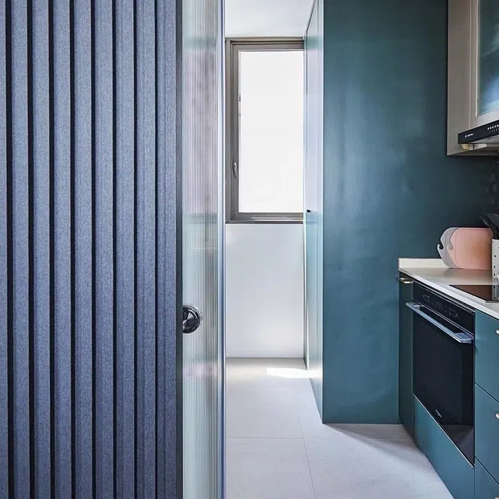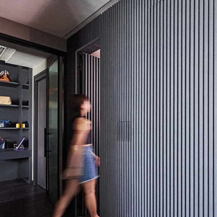 Fluted panels are a recurrent element in the home that Yen used to tie the various spaces together.