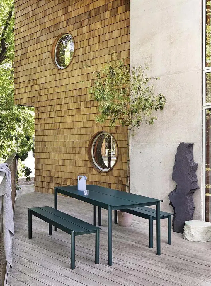 Clean lines, folded edges, and half-circular intersecting legs come together to form a classic and timeless aesthetic. The Linear Steel Series by MUUTO is designed to last, made with weather-resistant steel topped off with a matte UV-resistant powder coat finish.