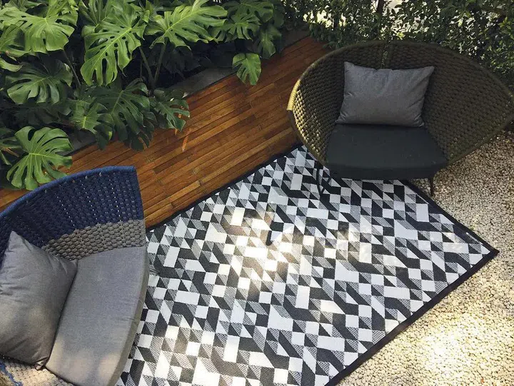 This reversible mat features a different colourway on each side, so you can flip it whenever you feel like switching up the asesthetic. They’re made of UV-resistant fibres created entirely from recycled or recyclable polypropylene, so they’re not only easy to clean but also environmentally friendly.
