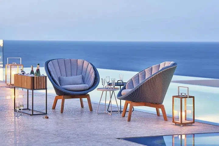 With a curved high back reminiscent of a peacock’s open tail, the Peacock Outdoor Lounge Chair instantly elevates the look of any balcony or pool area. It’s temperature- and UV-resistant thanks to the Cane-line Soft Rope material, keeping its colours as vibrant as the feathers of its namesake bird.