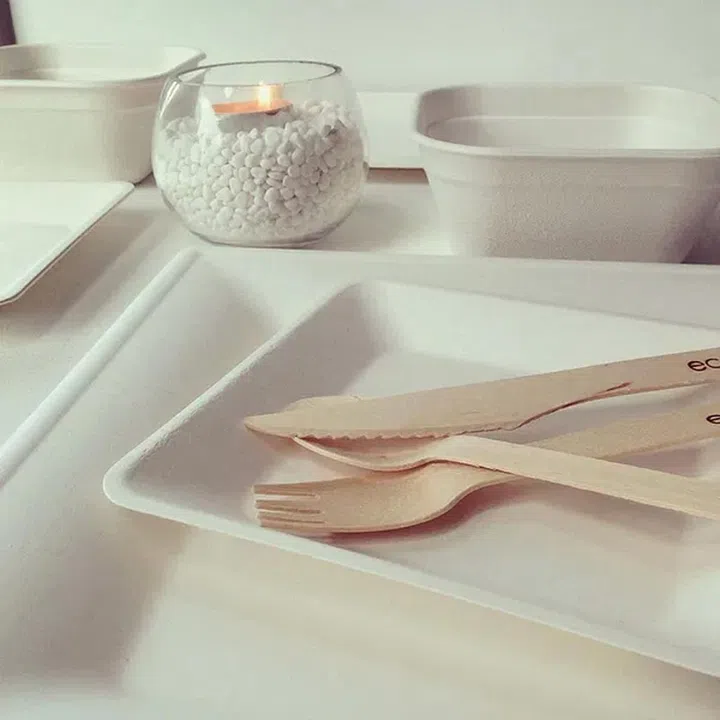 Tableware includes those made from wheat straw for a more kraft paper finish and sugarcane bagasse in various shapes and sizes. They even have a festive range of jaunty straws and cups.