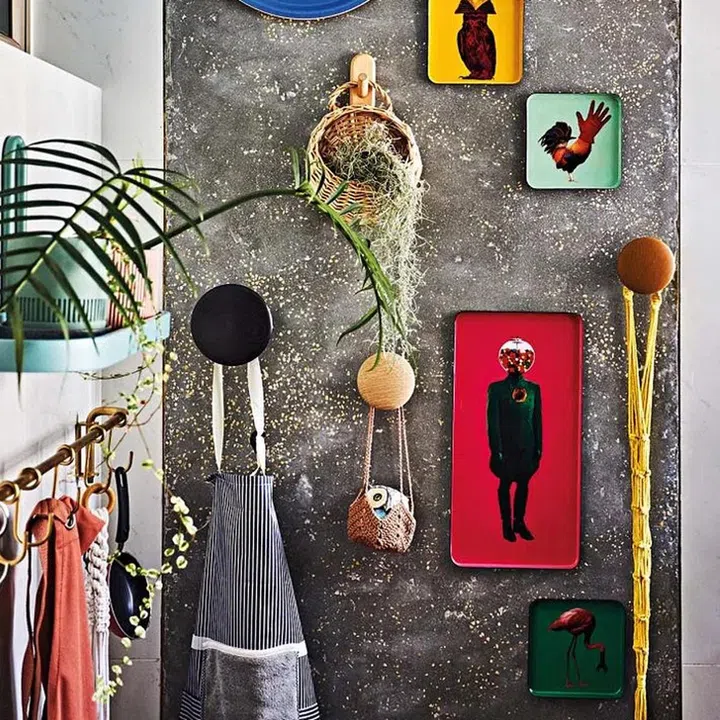 A handwoven wall hanging with rustic ombre effect adds a perfect finishing touch to the final look of the space.