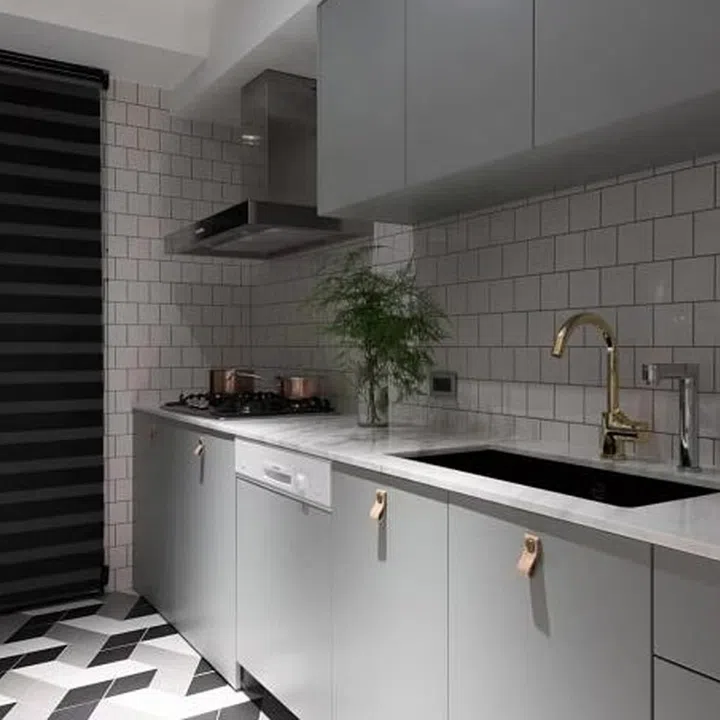 In the kitchen, white subway tiles add interest to the backsplash.