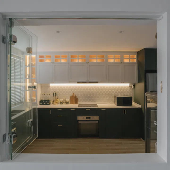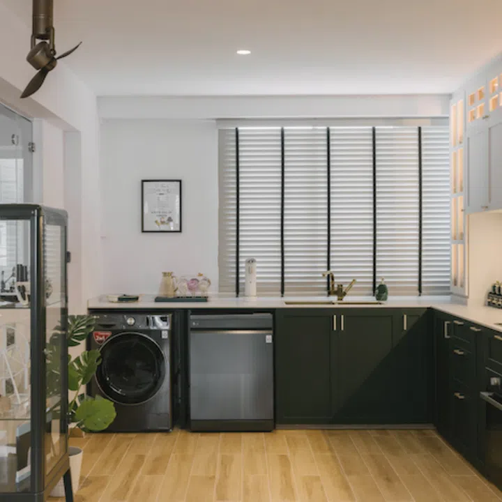 Conventionally, most homeowners will simply move the entrance of their house to the end of the access corridor, but it does not make the house look spacious. As such, we proposed a radical plan to hack down the wall of the access corridor, merging the space between the access corridor and the kitchen, creating a spacious and rectangular kitchen. This bold move was not carried out without any hurdle. We had to seek HDB’s permit before we could hack the wall of the access corridor, which was very rarely done before.
