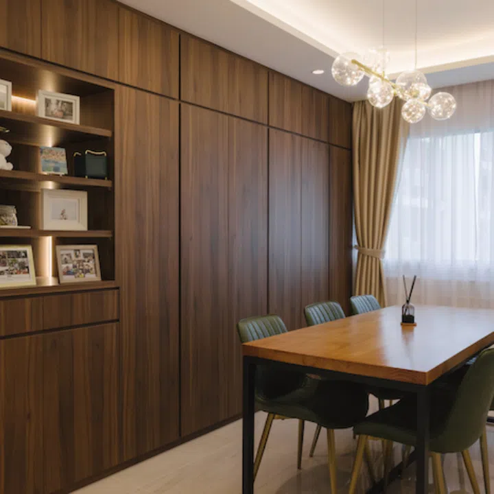 Firstly, the team had to thoroughly study the floorplan, and propose modifications to the layout that would expand the spaciousness of the house. As this unit is a 5-room flat with 4 bedrooms, the size of the bedrooms and kitchen were relatively smaller. As the house is situated at the end of the corridor, the homeowners managed to procure the access corridor to extend the space of the open-concept living room and kitchen.