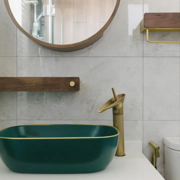 The design of the bathroom was kept simple in order not to take up valuable space within the small area. We chose to focus on using uniquely designed elements, such as the countertop sink and faucet, to create the sense of modernity and elegance.