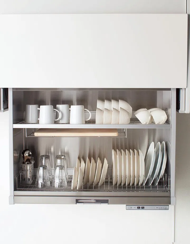 Are you the sort of person who hates seeing exposed clutter in the kitchen? Same here. While tucking everything neatly into cupboards might solve your immediate problem, it can be cumbersome to dig through high cabinets for less oft-used cookware when the time arises. With the Japanese Electronic Descending Dish Holder, not only will everything be properly organised, your items will always be within reach. With just a simple push of a button, you can lower the storage when necessary, and hide everything when you’re done.