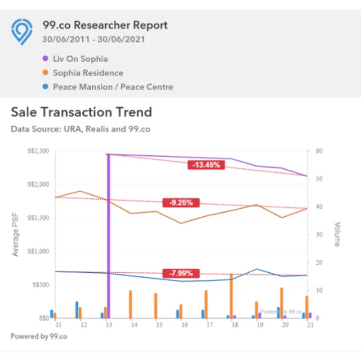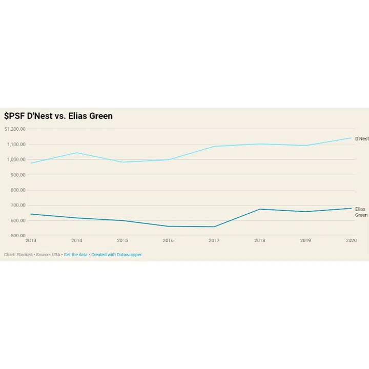 Prices have fallen by about eight per cent, whereas Sophia Residence has seen a drop of 9.25 per cent, and Liv on Sophia (completed quite recently in 2018) has seen a drop of 13.45 per cent.