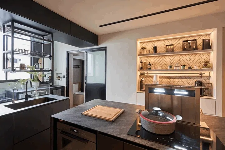 The HDB underwent an extensive two-month renovation period designed and overseen by interior design studio Rezt & Relax to fulfil Aiken’s design brief. Some of the most important considerations were a need for open communal areas for hosting people and plenty of storage space.