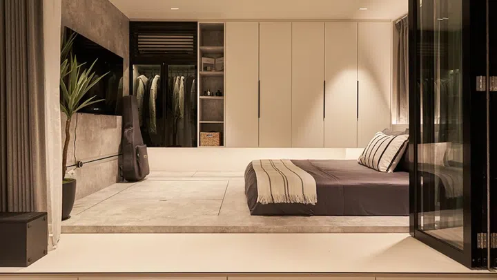 Integrating the living and dining spaces in an open plan is a tried-and-tested design strategy. But have you tried putting the bedroom space into that equation?