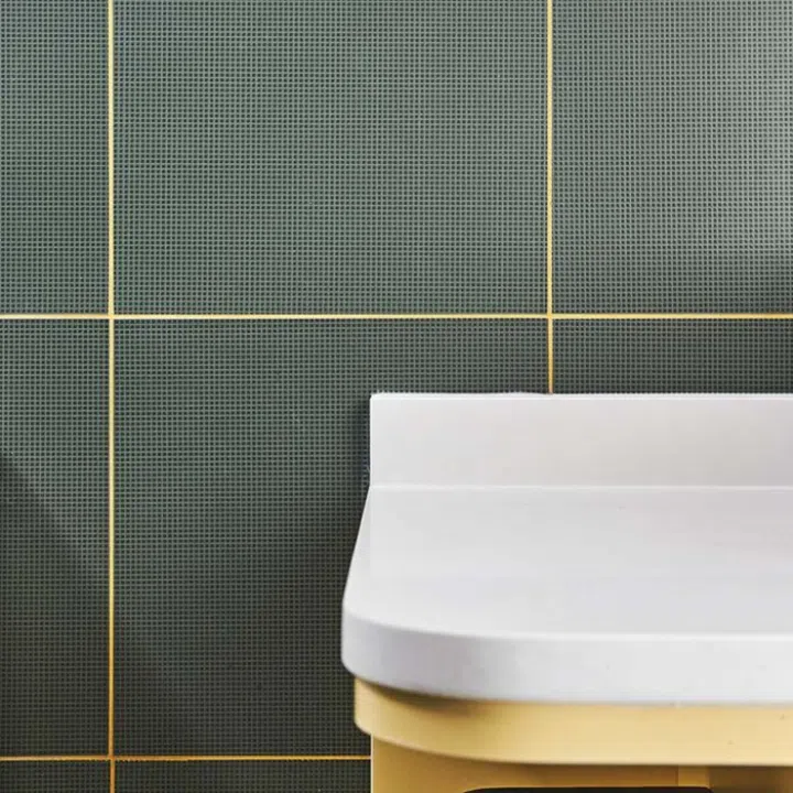 The mustard grout against the green tiles in the common bathroom always surprises new visitors.