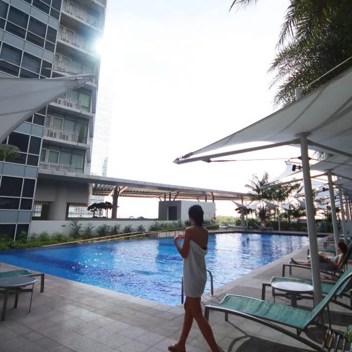 As a resident, you’ll get to enjoy all manner of good living amenities, including a gym, tennis courts, sauna and jacuzzi, a sky deck and no less than four swimming pools.