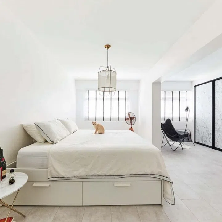 Plus, it will look great in pictures, as seen in this minimalist white bedroom designed by Ronald Wan. Matching the interior colour scheme with your pet also has the added benefit of camouflaging the animal hair that would inevitably cling to furniture and fabrics.