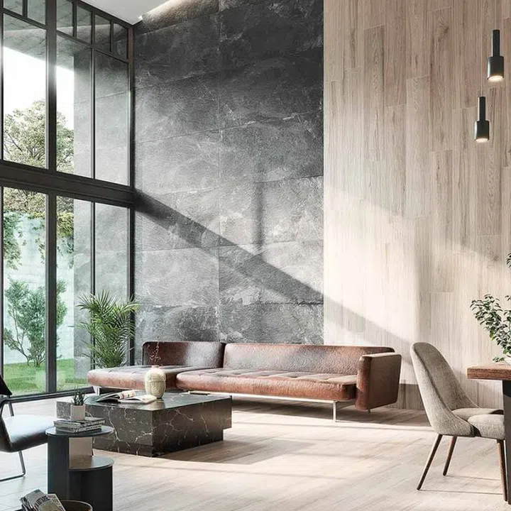 Tiles are ideal, as they are resilient, do not absorb moisture and odour, and are available in a wide range of colours and textures. These wood-look tiles from Hafary, for instance, lends warmth without the hassle of maintenance demanded by solid timber.