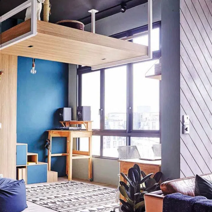 Vice versa, if you’d like to keep them out of the way, dedicate a perching place near the ceiling to free up the space beneath it, like in this condo designed by EightyTwo, which features custom-built spatial design elements like stairs and platforms for cats.