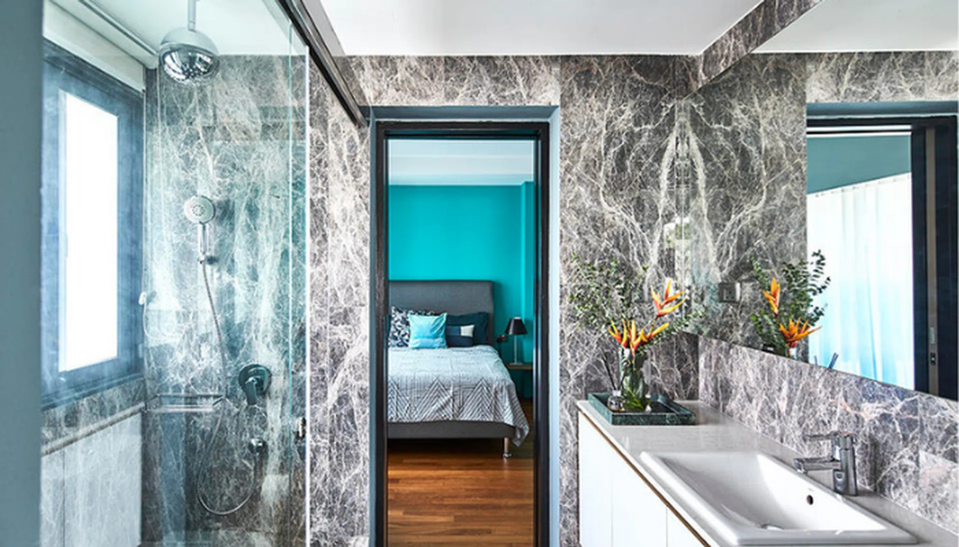 TIP: If you have a tight budget, modern ceramic tiles featuring marble patterns are good alternatives to real marble tiles. Not only are they easy to maintain, they also come with a three-dimensional veining effect for a more realistic look.