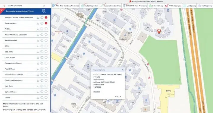To check this, you can utilise OneMaps as well. It comes with the Eseential Amenities (within 2KM) function and will showcase supermarkets, ATM machines, hawker centres, retail pharmacies and so on – basically essential amenities that make a place a lot more liveable.