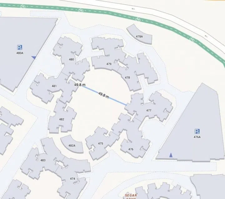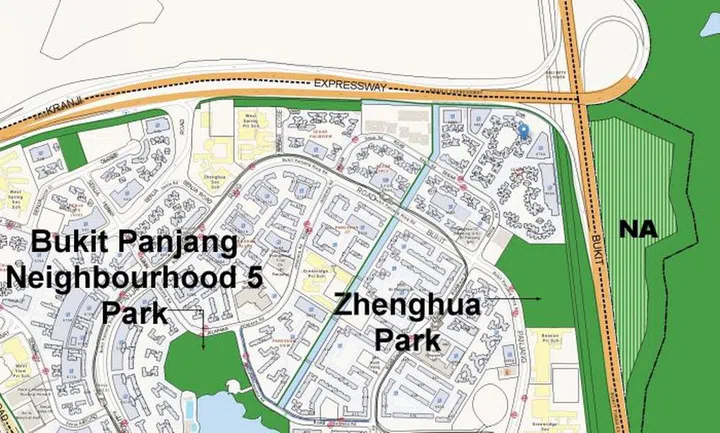 Notice how it cuts through the HDB on the east side of Pang Sua Pond? Now here's what Google Maps shows you: