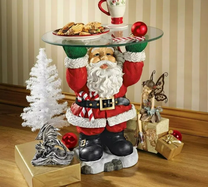 Enlist Santa's help with serving up delish treats and drinks with this adorable mini table.