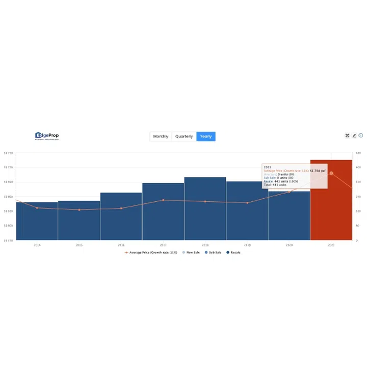 (For comparison, the average price of a 4-room flat island-wide is $493 psf).
