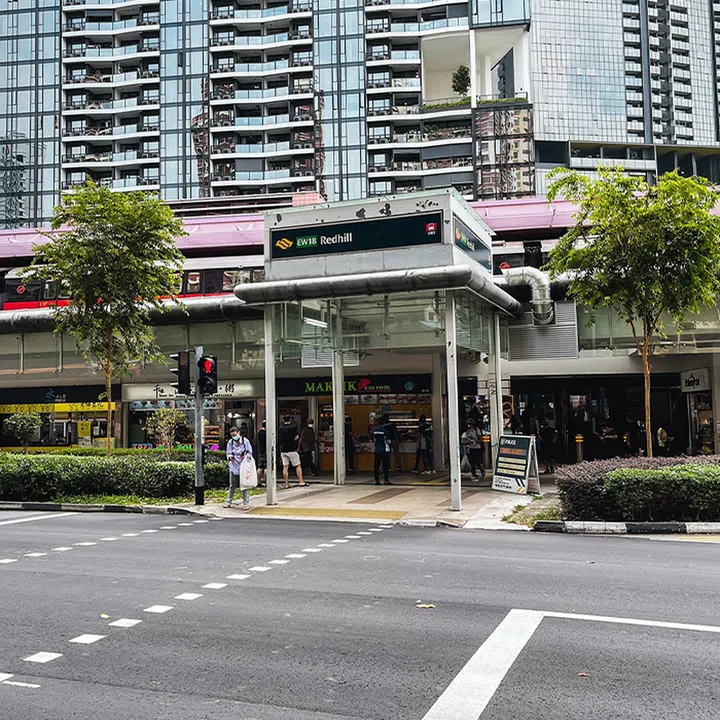 Depending on the exact location of your block, it’s an estimated eight to 10-minute walk to Redhill MRT station. This is on the East-West Line, and it’s four stops to Holland Village (via the Buona Vista interchange) and four stops (direct) to Raffles Place MRT.